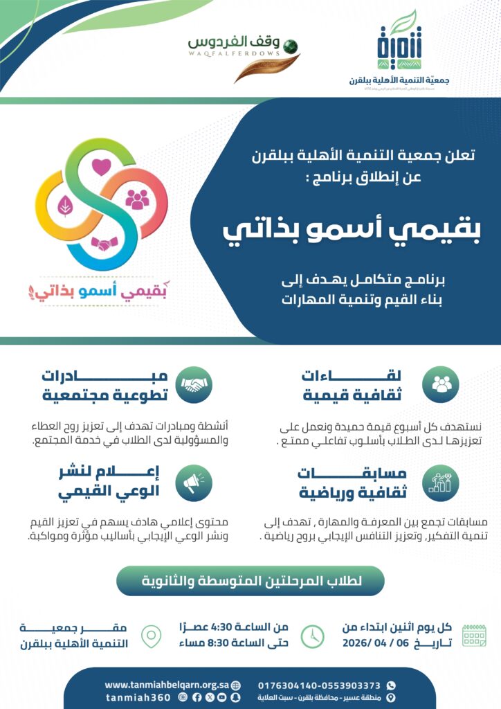 برنامج بقيمي أسمو بذاتي بدعم من وقف الفردوس / البرامج الشبابية, البرامج والأنشطة / بواسطة فريق التحرير