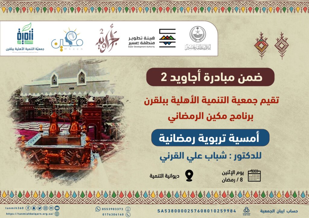 أمسية تربوية رمضانية للدكتور شباب القرني ضمن برنامج مكين الرمضاني / Uncategorized / بواسطة فريق التحرير